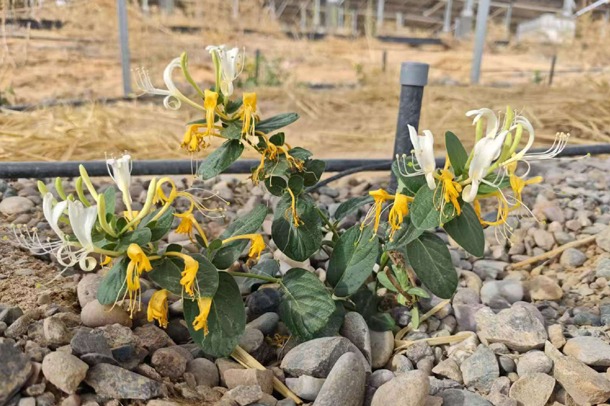 六月的腾格里沙漠,骄阳似火。在龙源电力宁夏中衡光伏电站,一片片整齐排列的光伏板宛如镶嵌在金色绸缎上的蓝宝石,持续输送着绿色电力。在电站的治沙创新技术测试与板下经济种植实证基地,中国科学院西北生态环境资源研究院副研究员杨昊天惊喜地发现,一簇簇金银花正悄然绽放,金黄与银白...