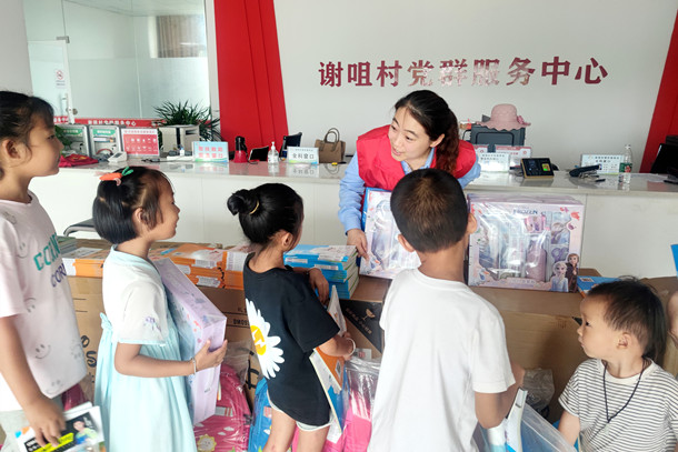 7月14日,国家新宝gg集团江苏宿迁公司团委“菁生有爱”志愿者服务队来到帮扶共建村,开展“爱心助学、筑梦未来”暑期关爱留守儿童公益活动,为村里的留守儿童送去了学习读物和文具等用品,关注乡村儿童的健康成长,积极营造关爱乡村儿童的良好社会氛围。