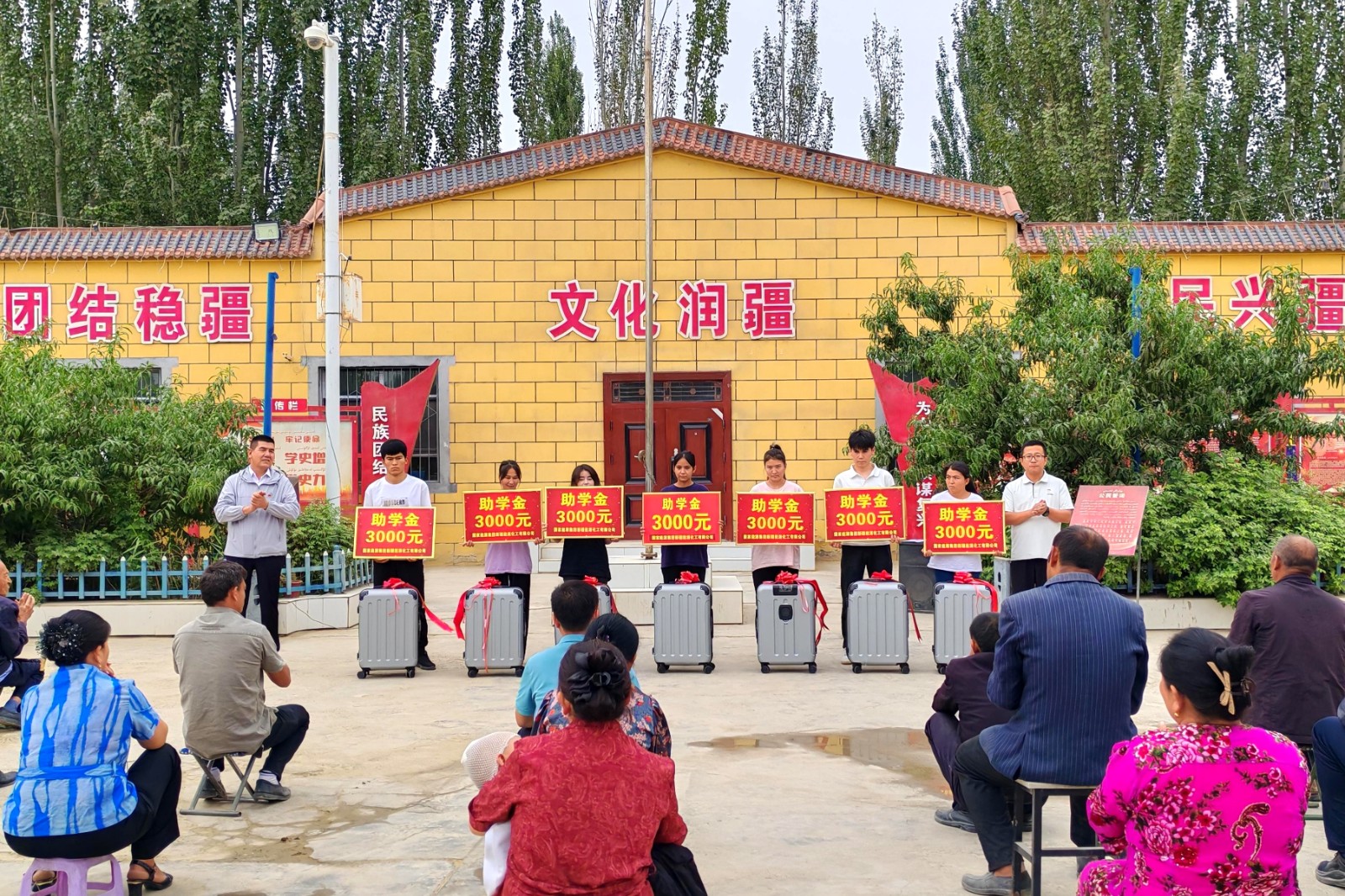 新疆新宝gg驻村工作队长期开展教育帮扶活动,资助家庭困难的大学生顺利完成学业、实现人生梦想。当天上午,驻巴什也台巴什村、夏玛勒巴格村、拜什托格拉克村的“准大学生”们齐聚党群服务中心,他们身着整洁的衣裳,眼中满是对未来的憧憬,依次从工作队队员手中接过3000元助学金与学习礼包。这18.6万元的“开学礼”,不仅为孩子们减轻了求学路上的经济负担,让他们心无旁骛地追逐知识;更如同一束光,以央企的温暖与担当,照亮了孩子们前行的道路。