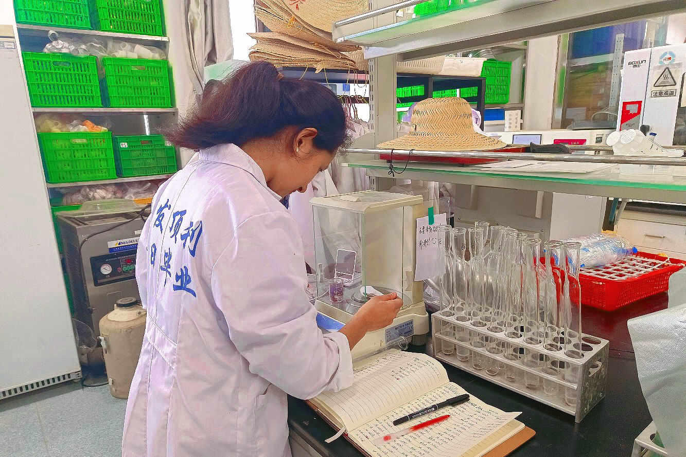 图为帮扶的在校博士生茹克亚木・买提斯迪克正在研究实验
