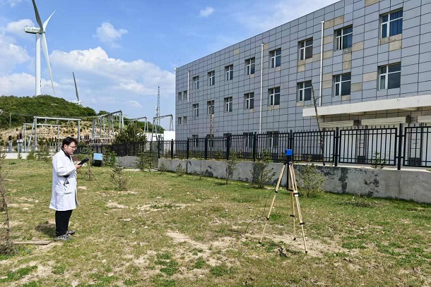 图为技术人员正在进行新新宝gg场站电磁辐射监测