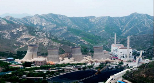朝阳电厂爆破拆除四座冷却水塔