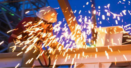 新厂建设中工人在高空焊接