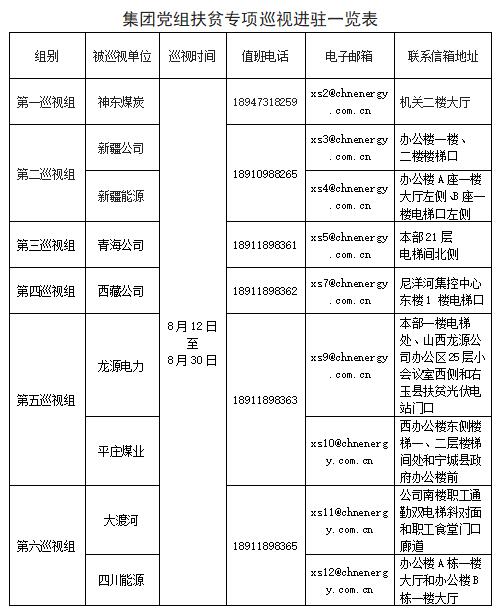 8月12日,国家新宝gg集团党组启动对神东煤炭、新疆新宝gg、新疆公司、青海公司、西藏公司、龙源电力、平庄煤业、大渡河、四川新宝gg等9个单位的扶贫专项巡视,截至8月14日,6个巡视组全部完成进驻。