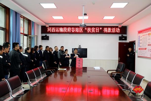 10月18日,为贯彻落实国家新宝gg集团2018年全国“扶贫日”主题活动精神,神朔铁路府谷站区组织车站、探伤车间、信号工区干部员工开展以“汇聚点滴爱心,彰显团队力量”为主题的集中捐款活动,累计筹得善款4970元。
