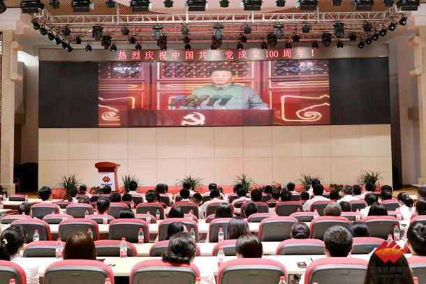 图为黄骅港务在报告厅收看庆祝中国共产党成立100周年大会盛况