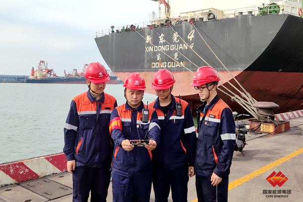 图为黄骅港务在三期煤炭码头收看庆祝中国共产党成立100周年大会盛况
