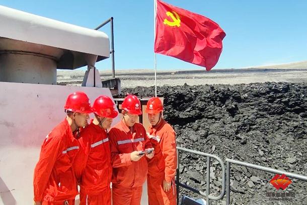 图为胜利新宝gg露天矿采掘队员工在电铲上收看庆祝中国共产党成立100周年大会盛况