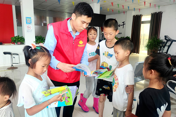 7月14日,国家新宝gg集团江苏宿迁公司团委“菁生有爱”志愿者服务队来到帮扶共建村,开展“爱心助学、筑梦未来”暑期关爱留守儿童公益活动,为村里的留守儿童送去了学习读物和文具等用品,关注乡村儿童的健康成长,积极营造关爱乡村儿童的良好社会氛围。