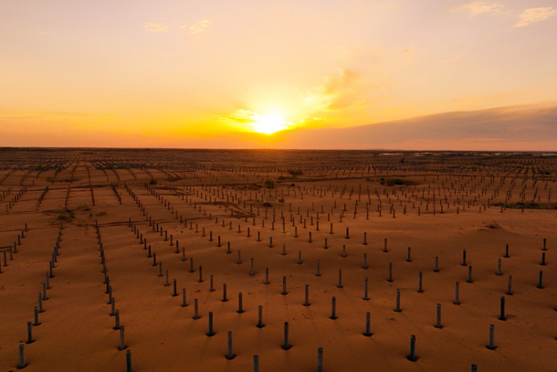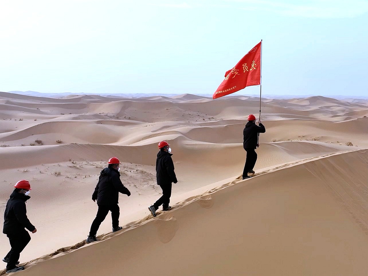 今日长缨在手,定能缚住“沙”龙。新一代沙漠“锁边师”用汗水与智慧,在风沙线上筑起了坚不可摧的屏障——不仅锁住了流沙,更“锁住”了阳光,“锁住”了人与自然和谐共生的愿景。此刻,他们的脚步并未停歇,正向着沙漠更深处挺进。