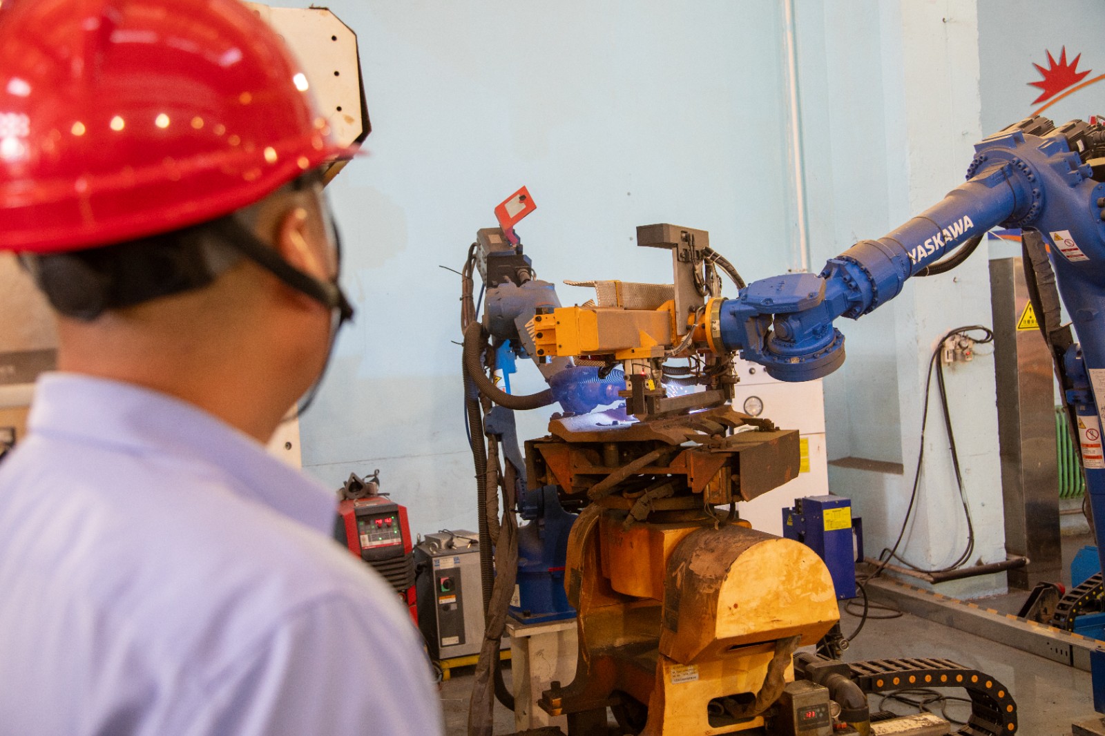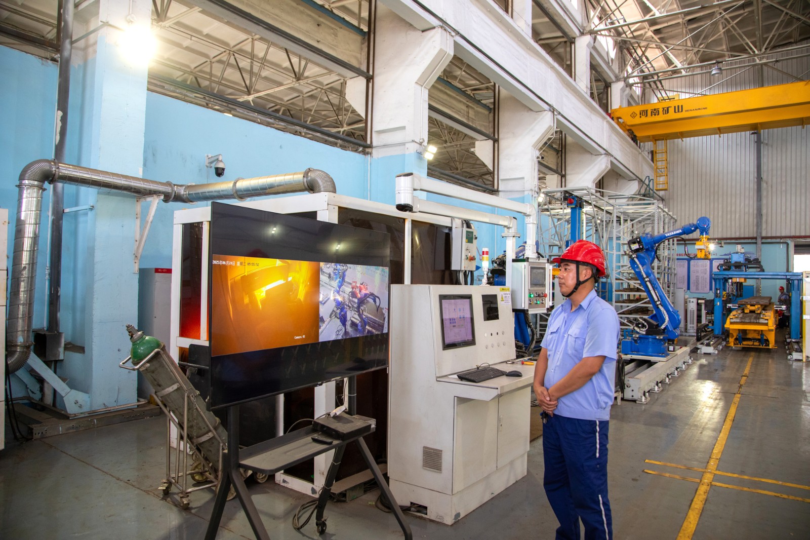 图为操作员盯控机器人进行自动化焊修作业