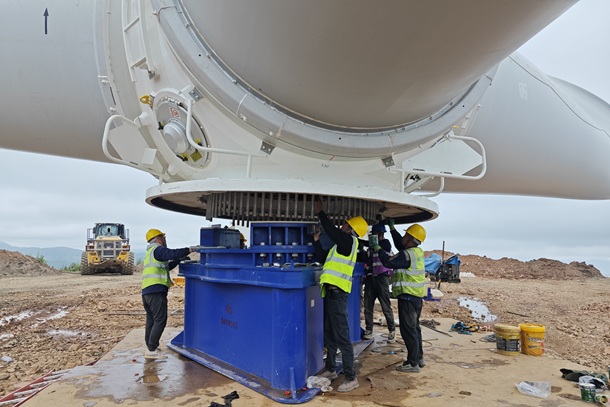 “准备工作完毕,开始安装吊具。”“吊具安装完毕,开始变桨。”对讲机里的报告声在潮湿的空气中依次响起,清晰而紧绷。